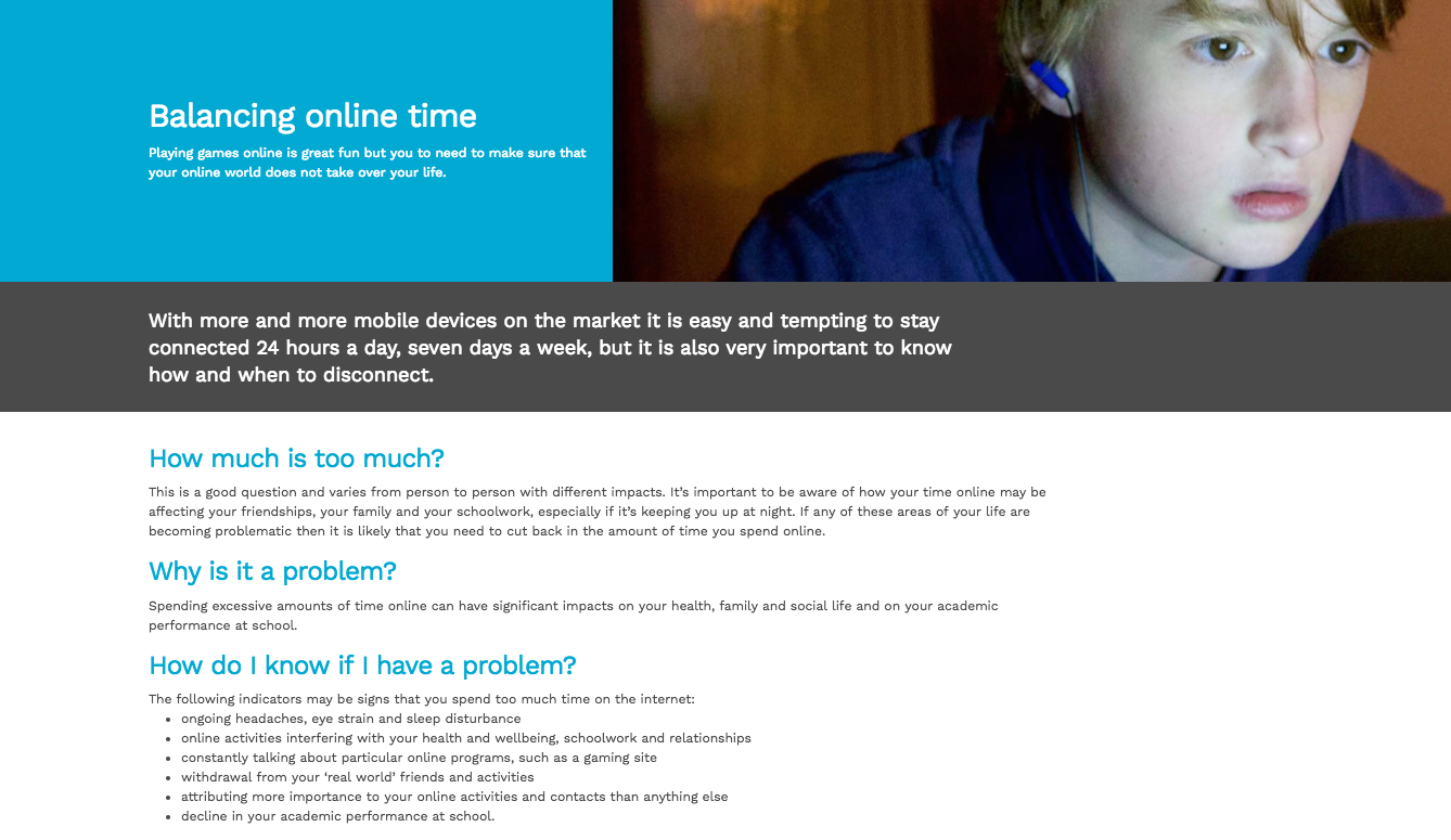 This is a good question and varies from person to person with different impacts. It’s important to be aware of how your time online may be affecting your friendships, your family and your schoolwork, especially if it’s keeping you up at night. If any of these areas of your life are becoming problematic then it is likely that you need to cut back in the amount of time you spend online.
